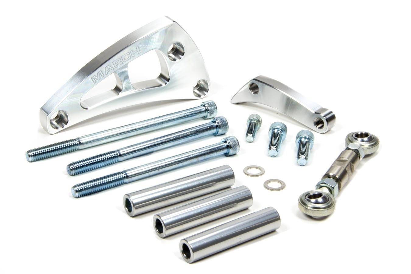 Alternator Bracket - Passenger Side - Mid Mount - Head / Water Pump Mount - Aluminum - Clear Powder Coat - Long Water Pump - Small Block Chevy - Kit