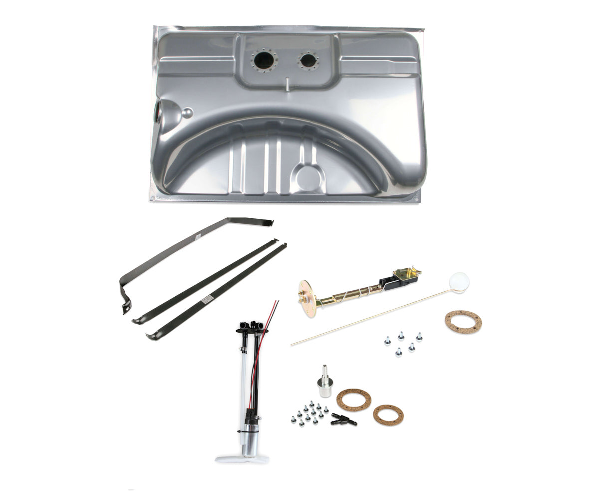 Fuel Tank - Sniper EFI - 16 gal - 255 lph Pump - 1/4 in NPT Outlet - 1/4 in NPT Return - Sending Unit - Steel - Silver Powder Coat - Mopar A-Body 1970-76 - Kit