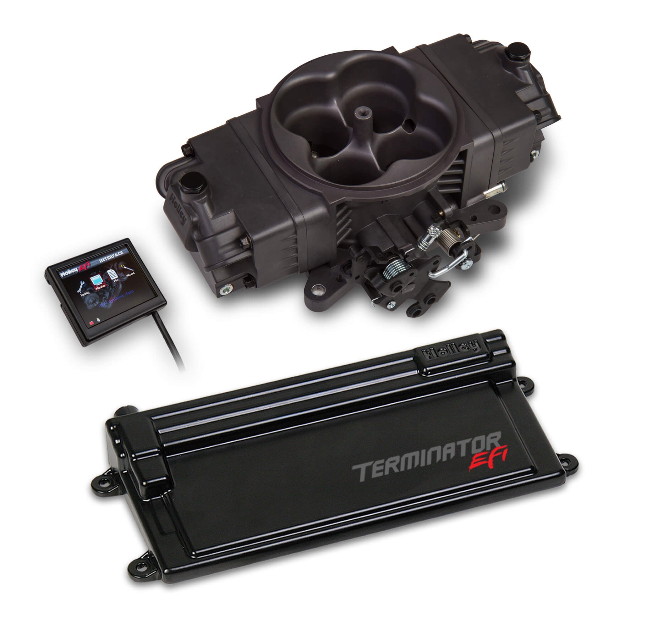 Fuel Injection - Terminator Stealth EFI - Throttle Body - Square Bore - 3.5 in Touch Screen / Transmission Harness / Tuner - Aluminum - Gray - V8 - Kit